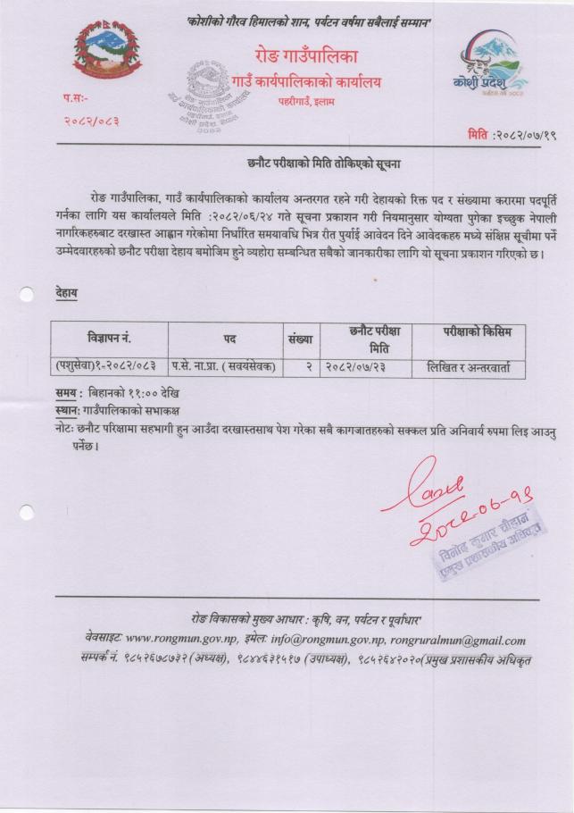छनौट परिक्षाको मिति तोकिएको सूचना ।