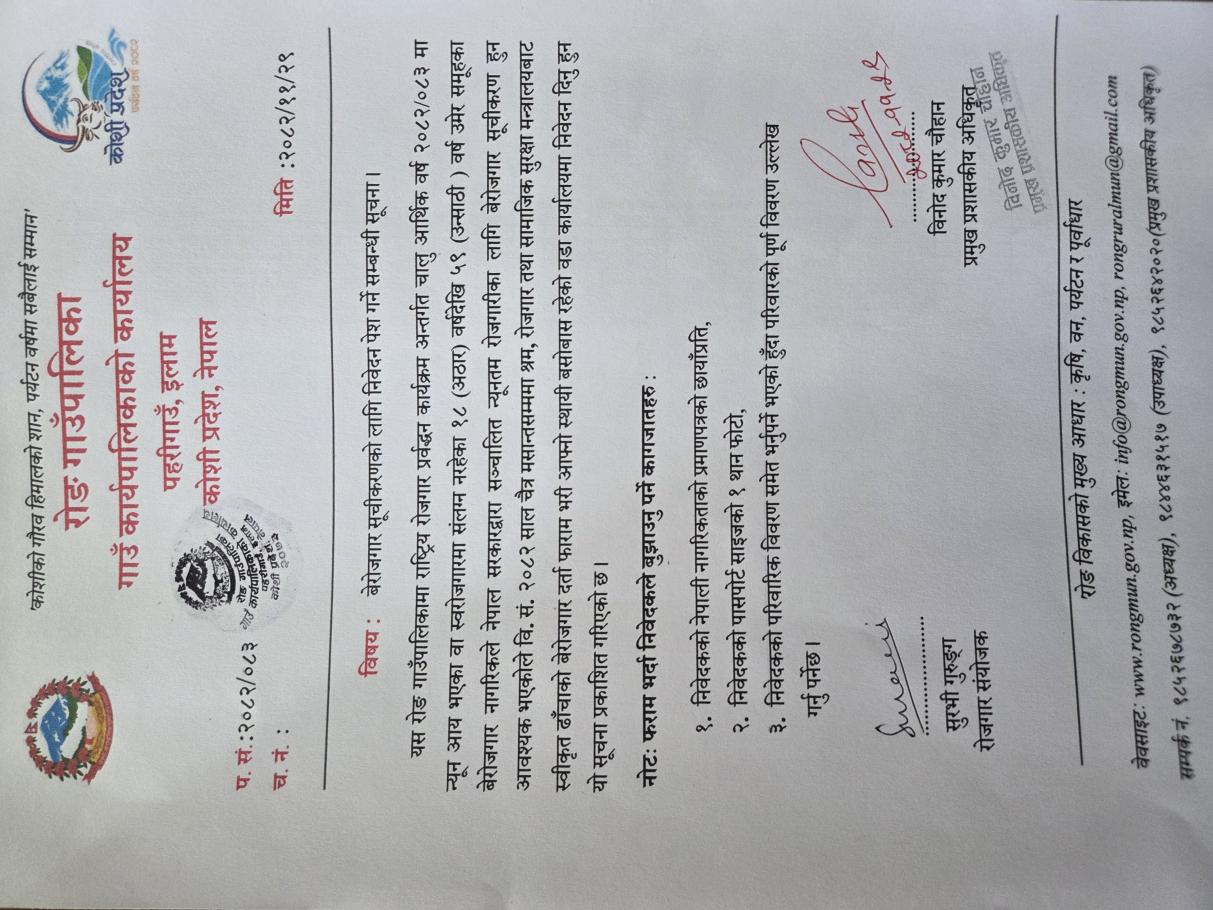 राेङ गाउँपालिकाको सूचना ।