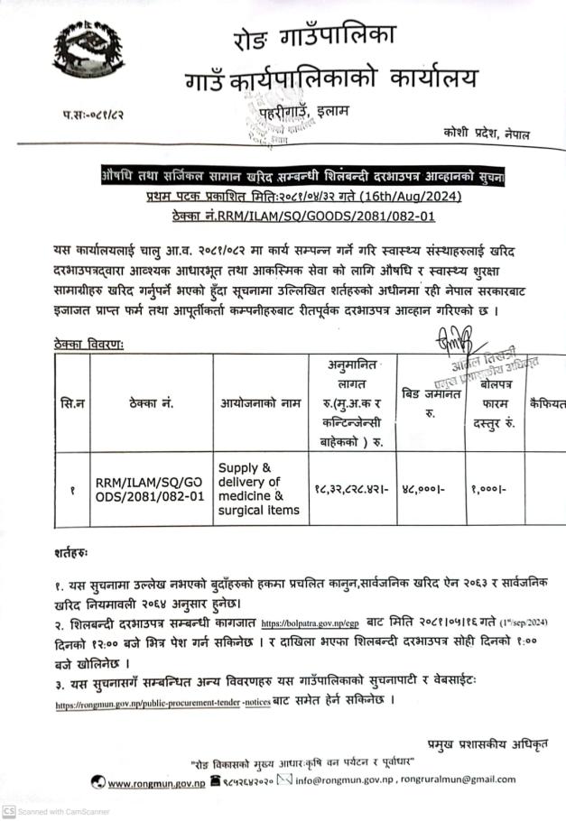 » औषधि तथा सर्जिकल सामान खरिद सम्बन्धी शिलबन्दी दरभाउपत्र आव्हानको सूचना ।