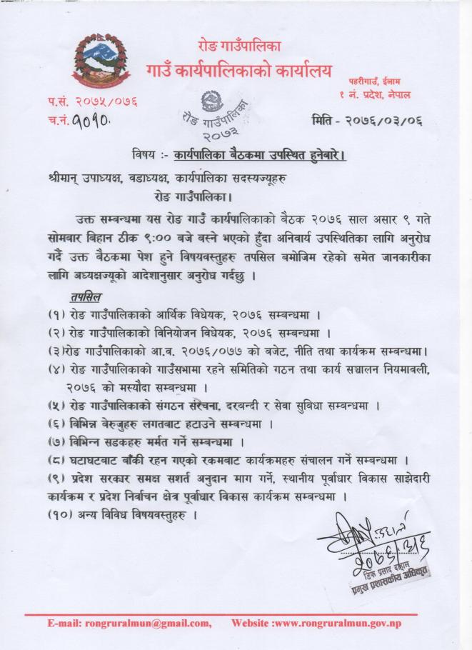 » कार्यपालिका बैठकमा उपस्थित हुनेबारेको सूचना ।
