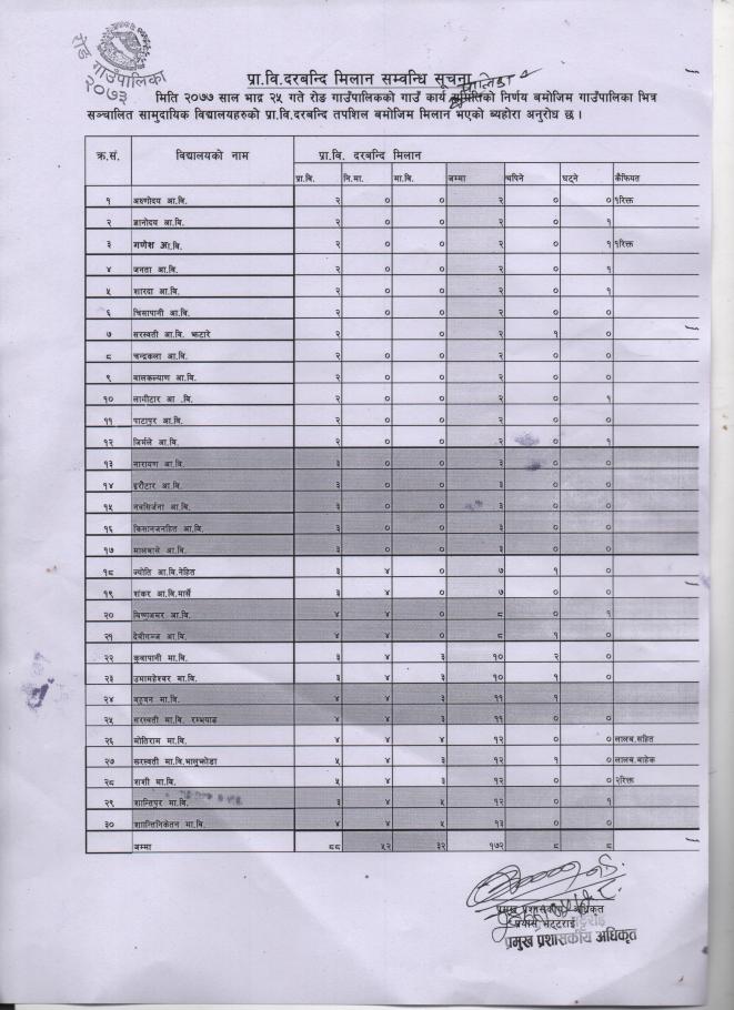 प्रा.वि दरबन्धी मिलान सम्बन्धी सूचना
