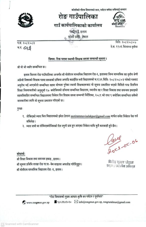 रिक्त पदमा स्थायी शिक्षक सरुवा सम्बन्धी सूचना ।