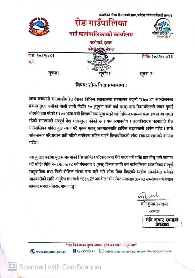 गाउँसभामा उपस्थित हुने बारे रोङ गाउँपालिकाको सूचना !