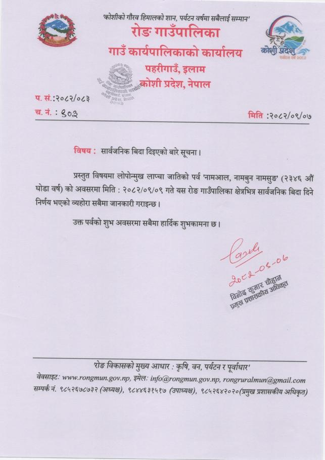 सार्वजनिक विदा सम्बन्धि सूचना ।