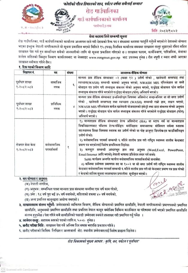 राेङ गाउँपालिकाको सूचना ।